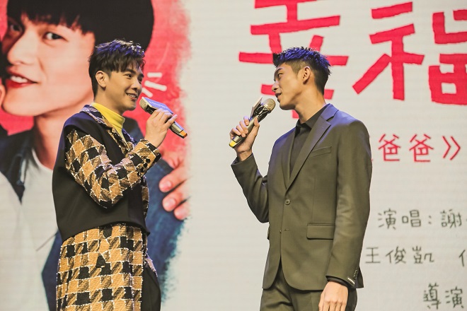 由于今日是林辉瑝的演唱处女秀,在后台紧张到两腿发软,谢佳见暖心牵起林辉瑝的手缓步出场,给足满满的安全感,甜蜜举动引起全场尖叫。两人在台上的亲密互动搭配上温暖鲜甜的嗓音,听得台下如痴如醉。” 什麽都不用去想,简单爱!牵你的手不放开 ” 好似从大萤幕中走出的双帅爸爸,将剧情化为真实呈现在观众面前。