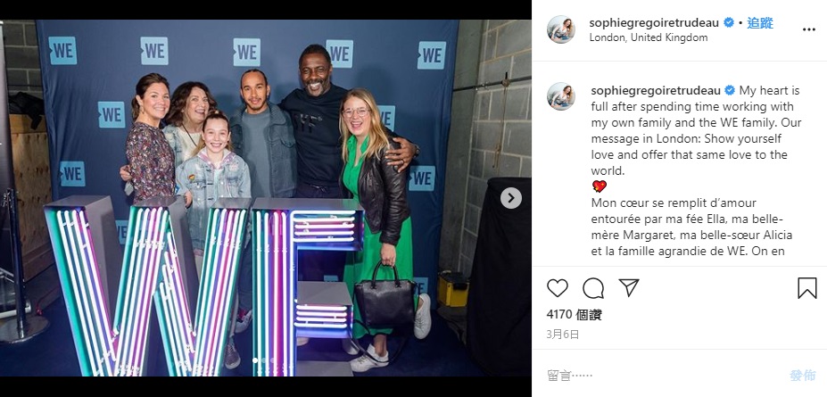 伊卓瑞斯艾巴与加拿大总理妻子月初出席同一慈善活动/Instagram