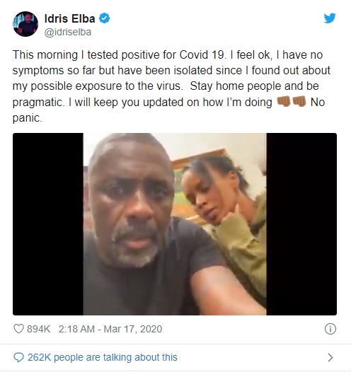 伊卓瑞斯艾巴公开确诊消息/Twitter