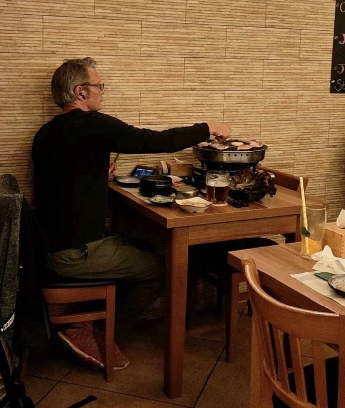 丹麦知名演员 “ 迈兹米克森 ” 因接演《怪兽与邓不利多的秘密》中黑巫师 ” 葛林戴华德 ” 而进入民众的视线中,不过早期他就因《汉尼拔》系列作品中的 ” 双面人魔 ” 一角大爆红。最近有粉丝在布拉格的韩式料理店巧遇迈叔,只见男神津津有味地大啖烤肉,现场彷佛梦回《汉尼拔》,照片甫上传至推特就引起大量粉丝热议啦~