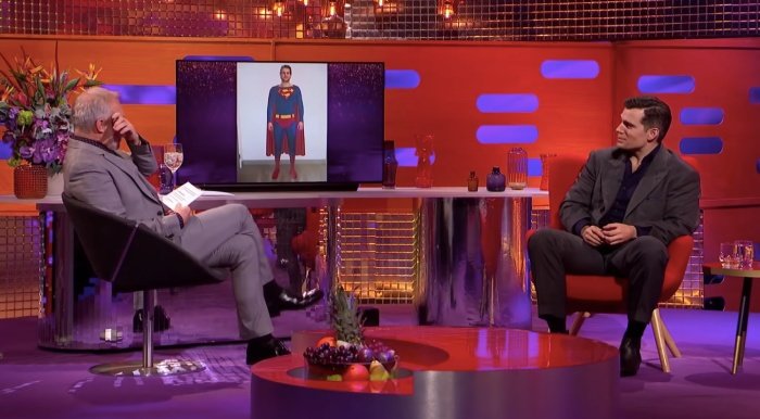 2021 年时亨利卡维尔与汤姆霍兰德、千黛亚一同登上了 Graham Norton 的访问节目在这场节目上,主持人 Graham Norton 提到了亨利卡维尔在试镜超人时是否有需要穿上超人装给试镜方看?而当时亨利卡维尔表示:” 很不幸的,真的要穿!”,更描述了自己拿到超人装时看起来跟小朋友的睡衣差不多感觉,而且心里想着 ” 这我穿上去看起来一定很糟 ”!