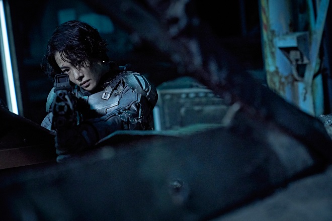 金贤珠所饰演的 ” 静_E” 曾是联军最精锐的队长,后来成了大脑复制的实验对象。